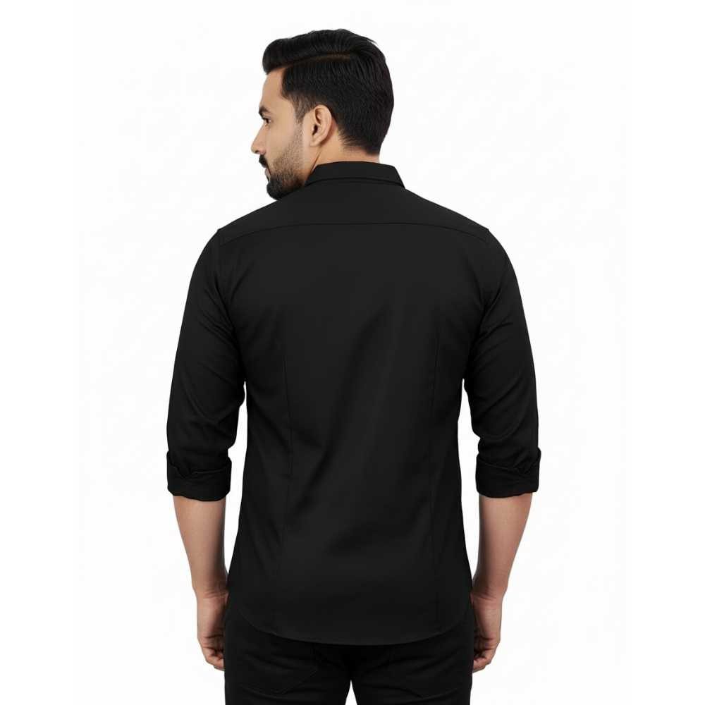 Versatile Men’s Solid Black Poly Blend Shirt